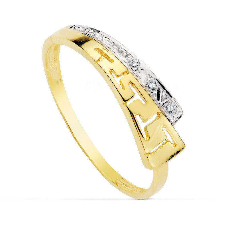 18K SORTIJA ORO BICOLOR CON MOTIVO DE GRECA Y CIRCONITAS