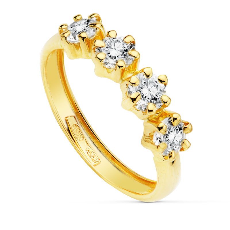 18K SORTIJA ORO AMARILLO CON 4 CIRCONITAS DE 4 MM EN GARRAS