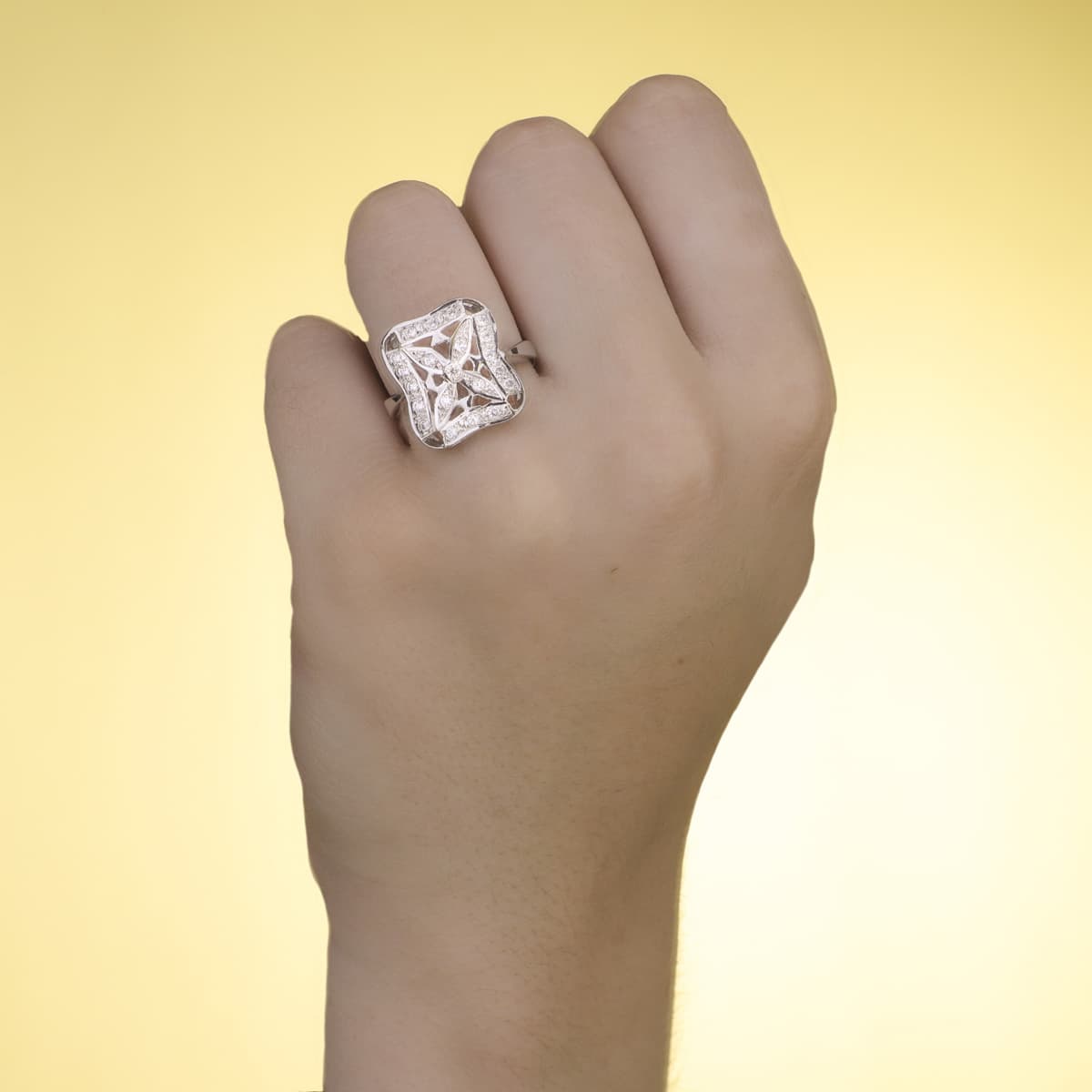 18K SORTIJA ORO BLANCO JUEGO NOVIA CIRCONITAS 17X17 MM CABEZA