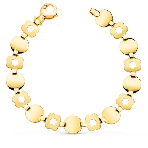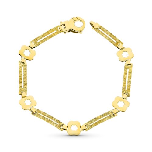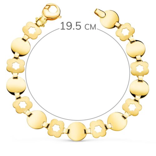 18K PULSERA ORO AMARILLO ESLABON REDONDO Y FLOR MATE ANCHO 10 MM LARGO 19.5CM