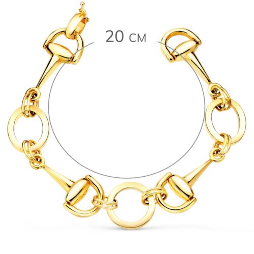 18K PULSERA ORO AMARILLO BOLAS CRISTAL MURANO 10 MM Y BOLAS LISAS 6 MM 21 CM