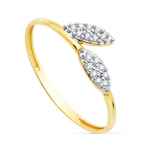 18K SORTIJA ORO BICOLOR FLOR CON CIRCONITAS 11 MM ANCHO CUERPO 2 MM