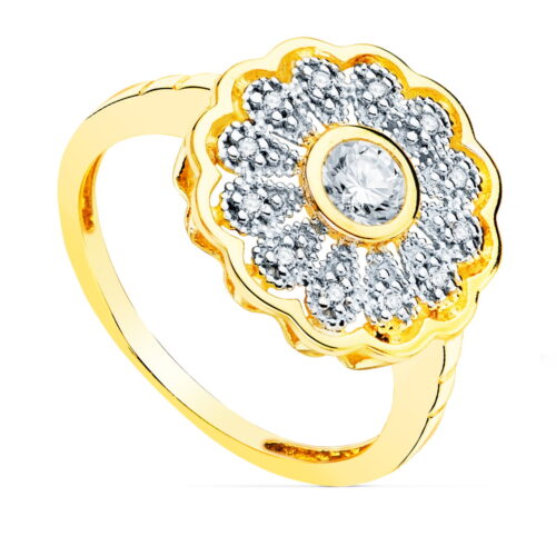 18K SORTIJA ORO BICOLOR ROSETON CON CIRCONITAS 14 MM CIRCONITA CENTRAL 4 MM