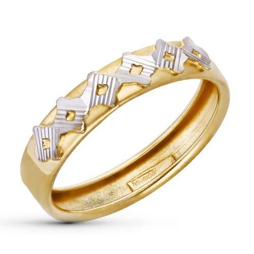 18K SORTIJA ORO BICOLOR CON BORDES LISOS Y CENTRO DE CIRCONITAS. ANCHO: 10 MM