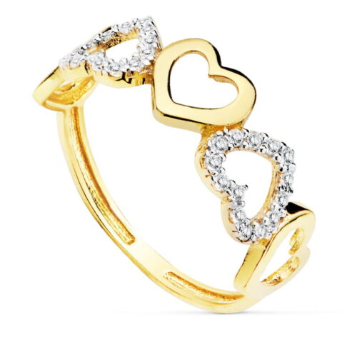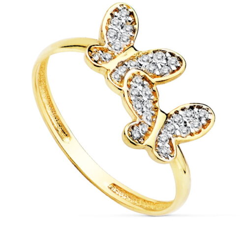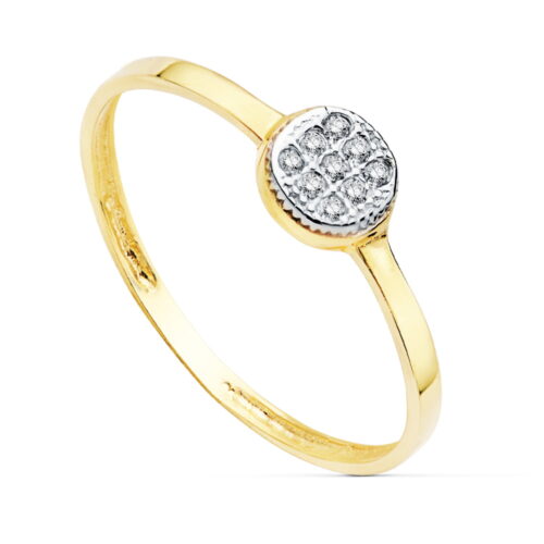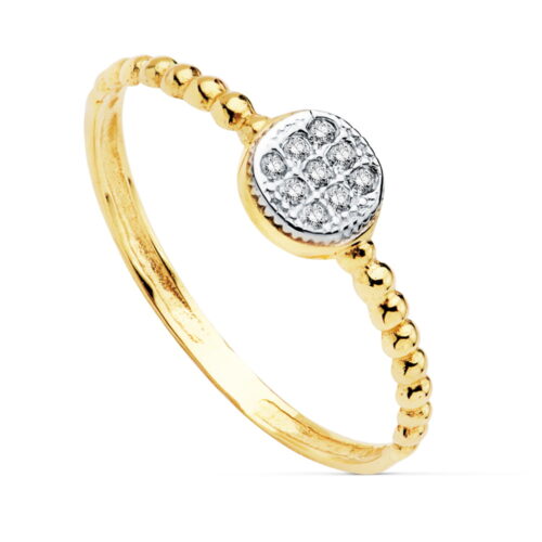 18K SORTIJA ORO BICOLOR FLOR DE 5 MM CON CIRCONITAS CUERPO BOLITAS