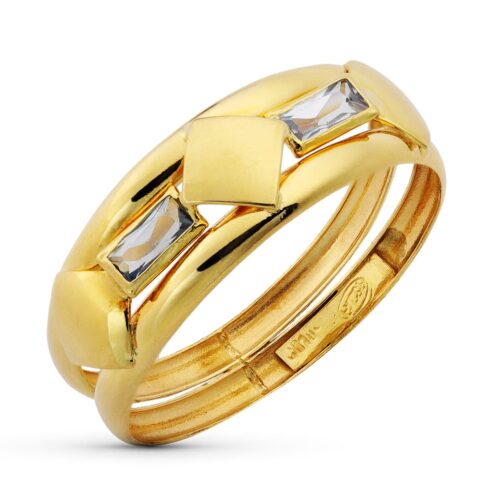 18K SORTIJA ORO AMARILLO CIRCONITAS AZULES Y BLANCAS. ANCHO CUERPO 2.5 MM