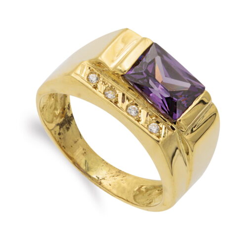 18K SORTIJA ORO AMARILLO CIRCONITAS VERDES Y BLANCAS. ANCHO CUERPO 2.5 MM