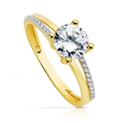 18K SOLITARIO ORO BICOLOR CIRCONITAS CON 4 GARRAS Y CIRCONITA DE 7 MM