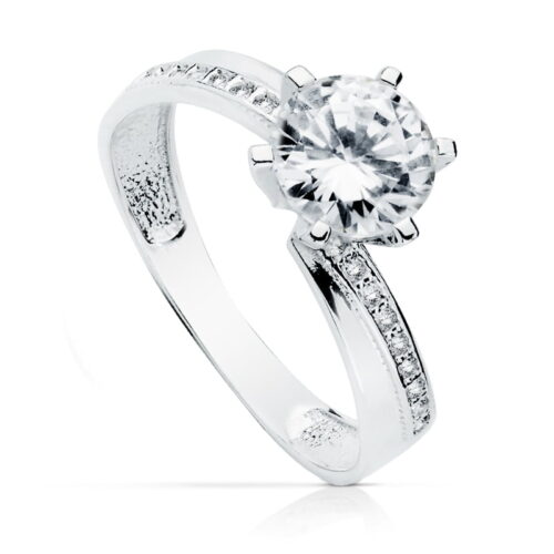 18K SOLITARIO ORO BLANCO CIRCONITAS CON 4 GARRAS Y CIRCONITA DE 7 MM